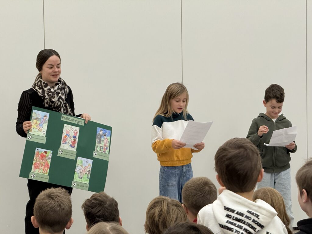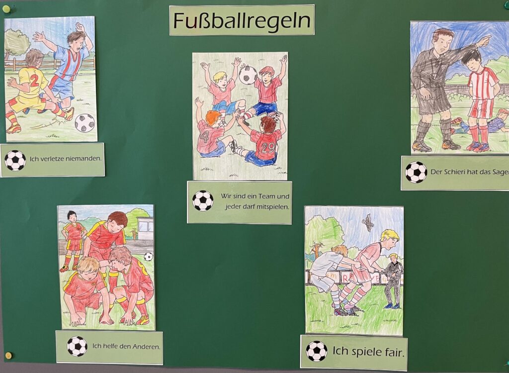 Des Weiteren wurden wichtige Fußballregeln erarbeitet und diese hängen nun im Eingangsbereich der Schule, damit diese für alle Fußballer stets präsent sind.
