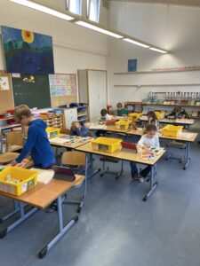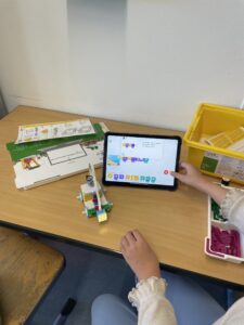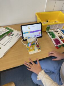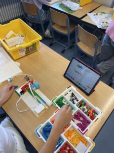 In diesem Schuljahr können wir für die Kinder der dritten und vierten Schuljahre eine Robotik – AG anbieten. Das Landesmedienzentrum Baden-Württemberg hat uns LEGO-Spike Kästen gesponsert. So konnten wir voll motiviert starten. Die erforderliche Programmierung findet auf den Tablets statt. Mittlerweile haben die Kinder gelernt, wie die Tablets mit ihren gebauten Sachen und den Hubs verbunden werden, so dass sie nun ihre Fahrgeschäfte steuern können. Mit der Hilfe von Lichtschranken oder anderen Startsignalen gab es einen kleinen „Rummelplatz“. Kleine Karussells, Musik, Burger-Bring-Maschinen oder andere Fahrzeuge bereicherten das Klassenzimmer. Die Kinder sind mit Feuereifer dabei : -)